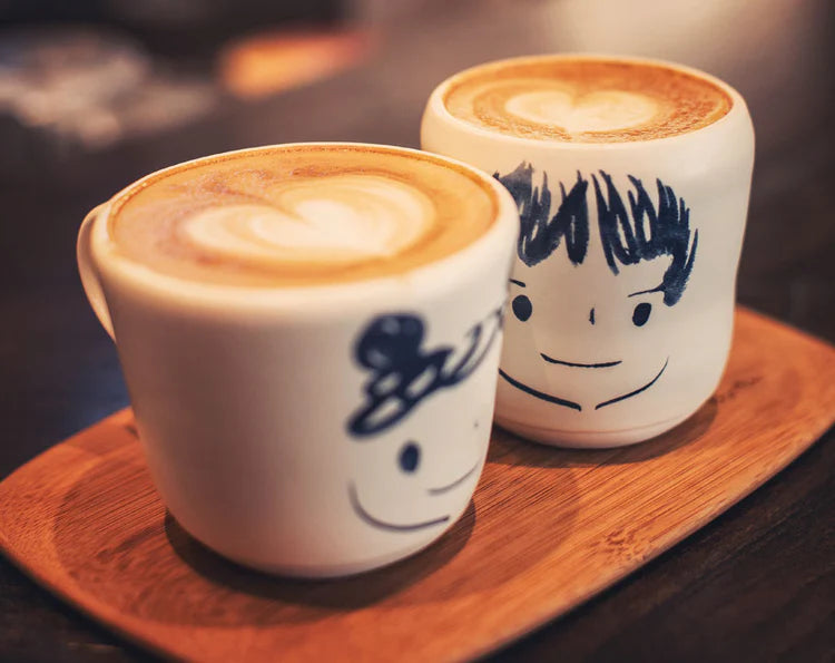 100 unique brush painted smiling faces on handcrafted ceramic mugs and plates. Start your day with a smile and cherish the happy little pauses in the day.